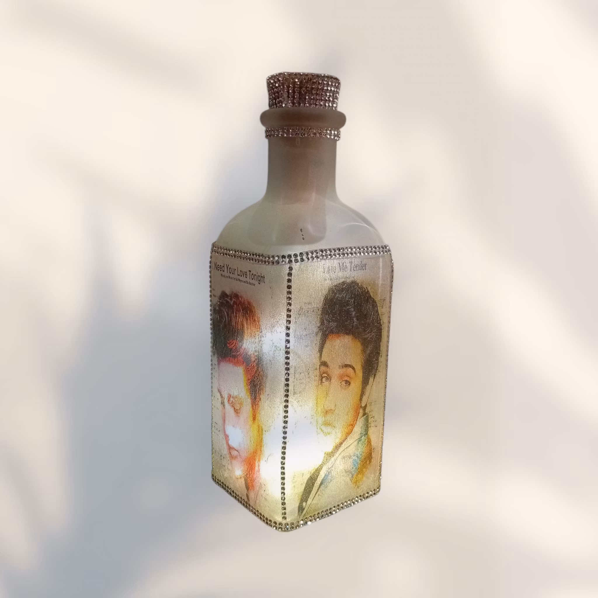 En ljusflaskan med Elvis Presley decoupage och bling bling Finns bara den här flaskanHöjd: 21 cm
