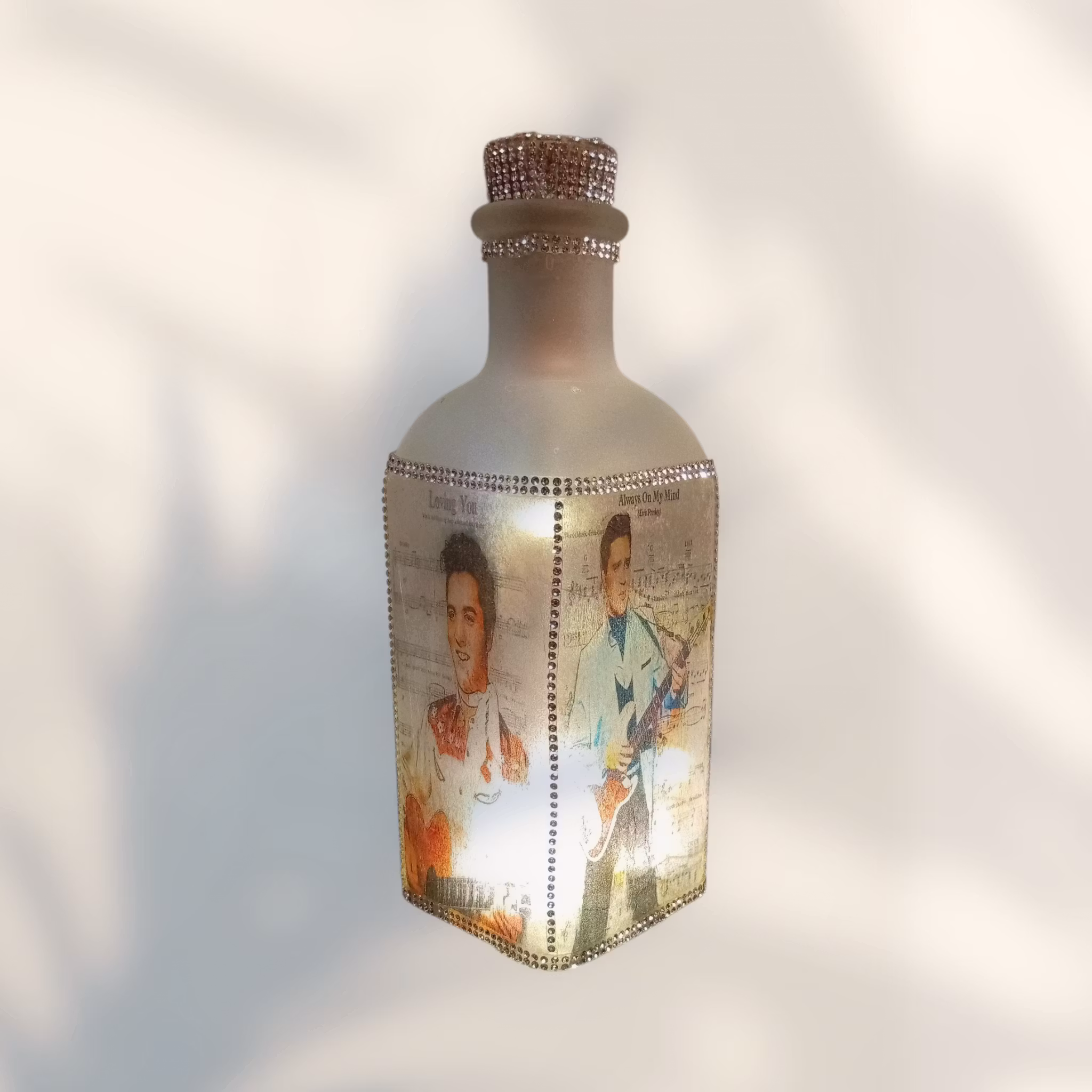 En ljusflaskan med Elvis Presley decoupage och bling bling