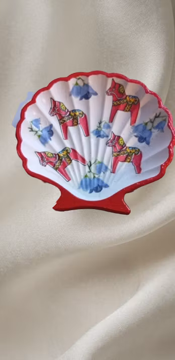 Ett snäckfat gjutet i gips.Elvis Presley decoupage och lackad. 10*10 cm